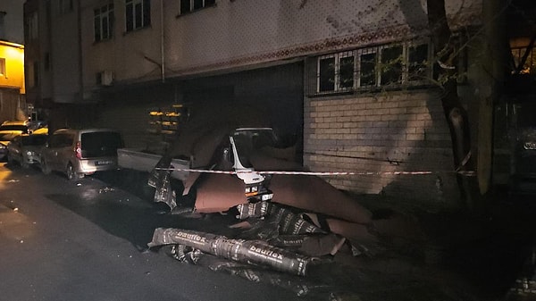 Kağıthane Nurtepe Mahallesi Eğriçınar Sokak’ta ise rüzgar tesiriyle uçan çatı modülleri park halindeki araçların üstüne düştü.