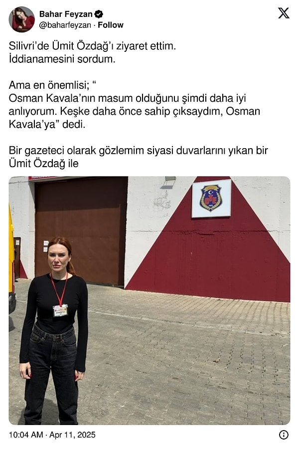 Feyzan, X hesabından dikkat çeken bir paylaşım yaptı. Ümit Özdağ, 1 Kasım 2017 tarihinden bu yana tutuklu olan Kavala hakkında dikkat çeken kelamlar söyledi.