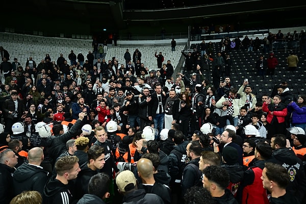 Maçın bitişiyle birlikte futbolcular soyunma odasına giderken taraftarla stadı terk etmedi ve ‘O ekip buraya gelecek’ tezahüratları yapıldı. Siyah beyazlı futbolcular da teknik grupla birlikte soyunma odasından alana döndü.