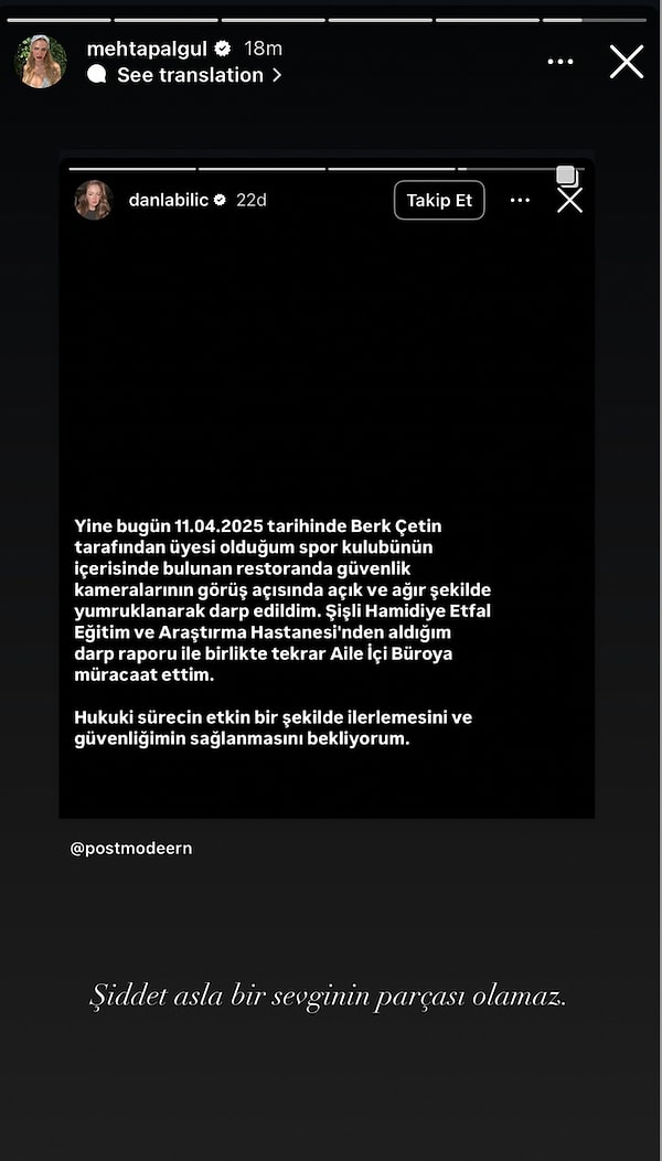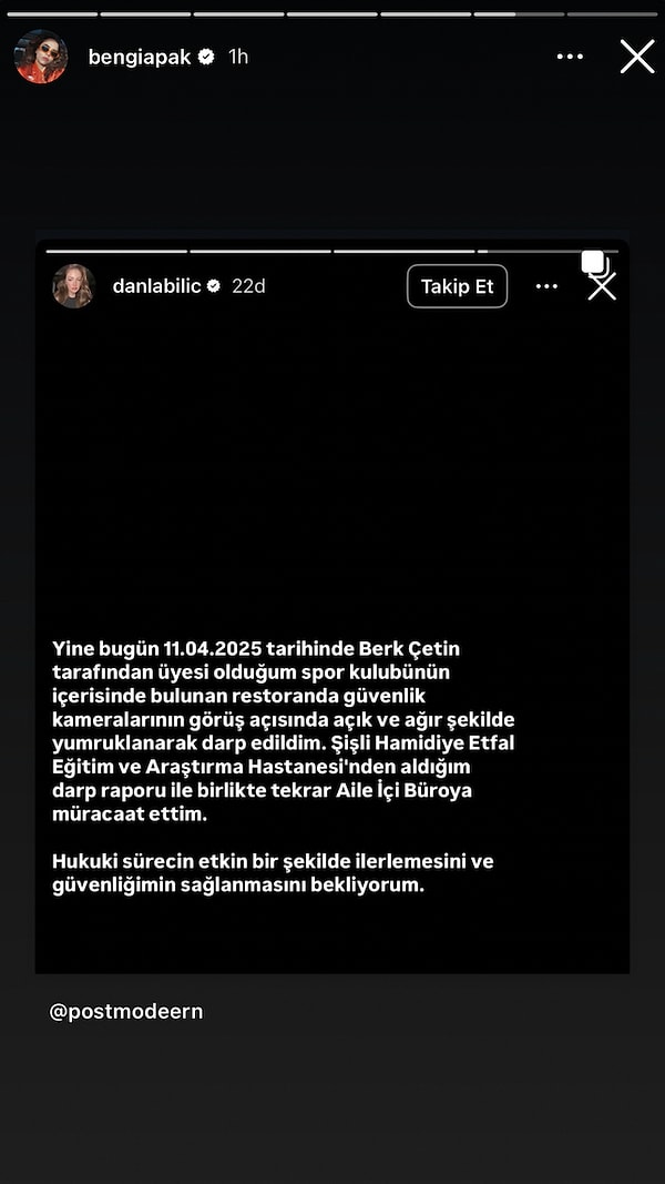 Aralık ayında tanışıp, geçtiğimiz ocak ayında ayrıldığı eski sevgilisi Berk Çetin tarafından darp ve taciz edildiğini yaptığı açıklamalarla anlatan Danla Bilic’e toplumsal medyadan kısa müddette dayanak yağdı.