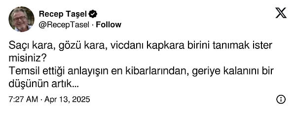 Saçı kara, gözü kara, vicdanı kapkara birini tanımak ister misiniz? Temsil ettiği anlayışın en kibarlarından, geriye kalanını bir düşünün artık…