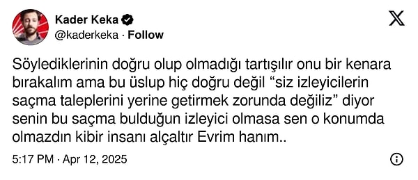 Video sonrası yansılar adeta çığ üzere büyüdü. Bazıları, “Küçümsediğin izleyici sayesinde reyting alıyorsun”, “Sana kamu spotu Kıvılcım demiyoruz boşuna” diyerek reaksiyon gösterdi.