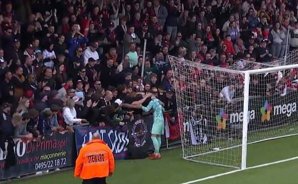 Genç kaleci, müsabaka sonrasında RFC Liege taraftarlarının yanına giderek teşekkür etti, sarıldı.