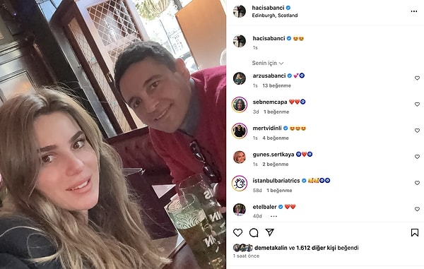 Instagram hesabından eşi Nazlı Sabancı ile bir poz paylaşan iş insanı, tabir yerindeyse “kriz yok” bildirisi verdi. Gülümseyen yüzleriyle dikkat çeken çiftin pozu kısa müddette gündem olurken, paylaşımına kalp emojileri de eklemeyi ihmal etmedi.