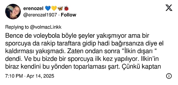 Galatasaray Bayan Voleybol Kadrosu kaptanı Birincinin Aydın’ın Fenerbahçe’ye karşı oynadığı maçta, tribündeki taraftarlar ile diyaloğa girmesi, toplumsal medyada görüş ayrılıklarını beraberinde getirdi. Ulusal atlete dayanak verenler de oldu, reaksiyon gösterenler de.