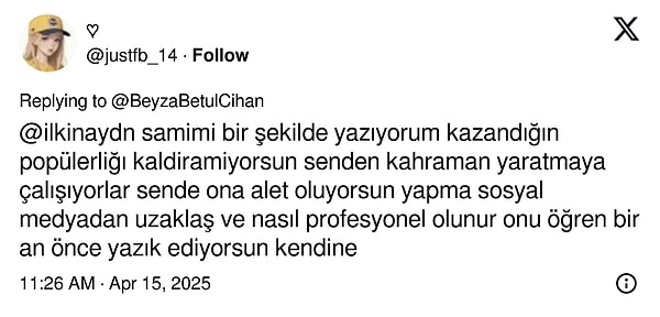 Gazeteci Beyza Betül Cihan’ın “Fenerbahçe taraftarı “İlkin dışarı” diye bağırmadan 1 dakika öncesi” paylaşımı 👇🏻
