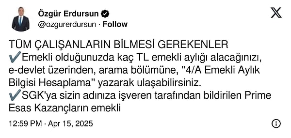 Sosyal Güvenlik Uzmanı Özgür Erdursun, X hesabından çalışanların merak ettiği ve cevabını beklediği soruları yanıtladı. İşte tüm çalışanların bilmesi gerekenler.