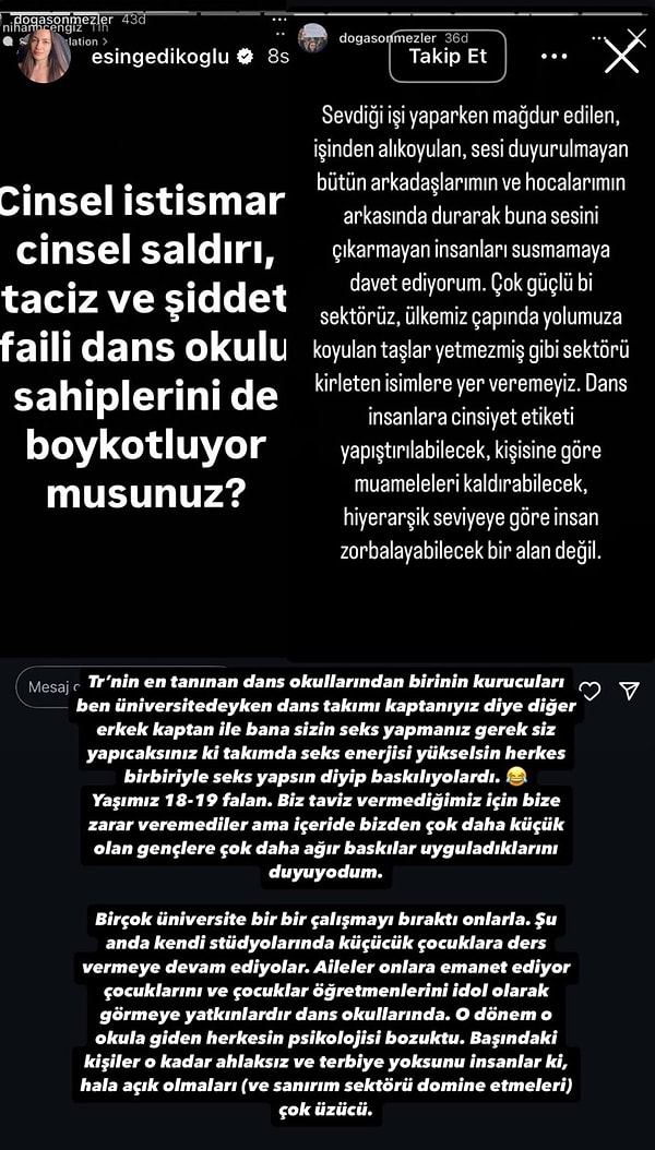 Kurumda hala öğrenci olan ve geçmişte öğrencilik yapmış onlarca bayan dansçı, yaşadıklarını tek tek ifşa etti. #DansEğitimiDeğilİstismar etiketi iste trend oldu.
