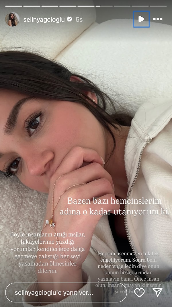 Selin Yağcıoğlu gelen yorumların akabinde toplumsal medya hesabından karşılık verdi.