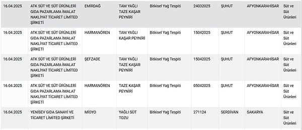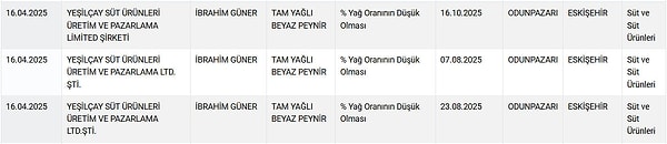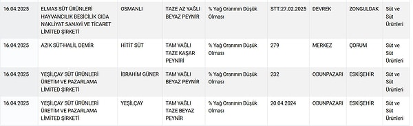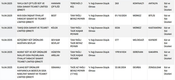 Yeni listede tereyağından tam yağlı beyaz peynire, taze kaşardan pide harcına, kıymadan sucuğa, süt tozundan zeytinyağına kadar çok sayıda marka ve eseri yer aldı.