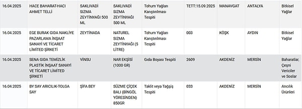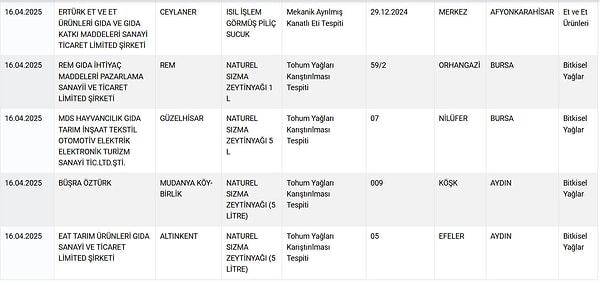 Tarım ve Orman Bakanlığı taklit-tağşiş, sağlığı tehlikeye düşürecek besinler listesini bir defa daha güncelledi, yeni skandallar gün yüzüne çıktı, yeni markalar ifşa oldu.