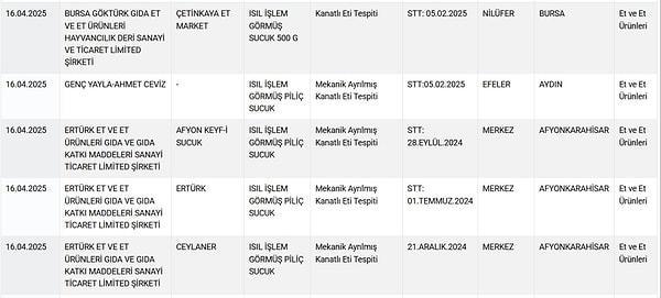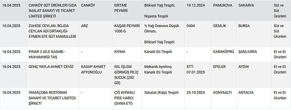 Tarım ve Orman Bakanlığı’nın yaptığı kontroller ve denetimler sonrasında tertipli olarak açıkladığı besinde hile yapan firmaların listesi bir kere daha güncellendi. Birçok skandalın yer aldığı listede vatandaşa tekrar at ve eşek eti yediren firmalar tek tek ifşa edildi. İşte insan sıhhatini hiçe sayarak skandallara imza atan firmalar ve ifşa edilen kirli düzenleri…