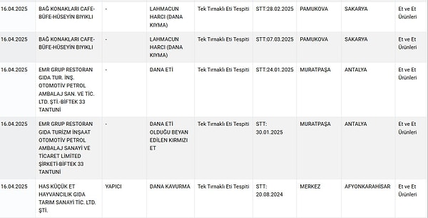 Sakarya’nın Pamukova ilçesinde hizmet veren Bağ Konakları Cafe isimli işletmenin lahmacununda, Antalya’nın Muratpaşa ilçesinde bulunan EMR Küme Restoran’ın dana etinde ve ‘Yapıcı’ marka kavurmada at ve eşek eti tespit edildi.