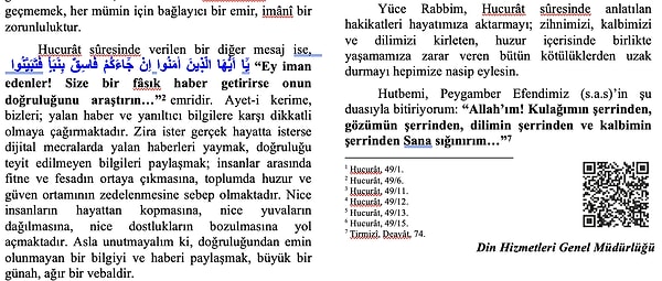 18 Nisan Cuma hutbesinde Rasim Ozan Kütahyalı’nın da gözaltına alınamasına sebep olan ‘gerçek olmayan haber’ konusu ele alındı. Hutbede, “Zira ister gerçek hayatta isterse dijital mecralarda palavra haberleri yaymak, doğruluğu teyit edilmeyen bilgileri paylaşmak; beşerler ortasında fitne ve fesadın ortaya çıkmasına, toplumda huzur ve inanç ortamının zedelenmesine sebep olmaktadır” denildi.