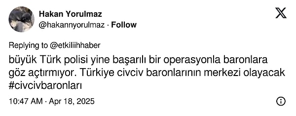 “Uyuşturucu baronlarını yakalamıyorlar, civciv baronlarını yakalıyorlar.”
