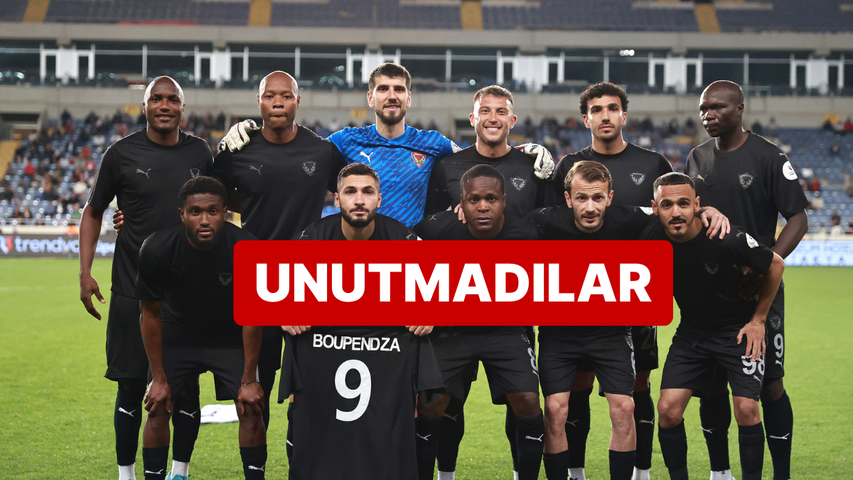 Maç öncesinde birinci 11 fotoğrafı çekilirken futbolcular hayatını kaybeden Boupendza’yı unutmadı. Gabonlu futbolcunun Hatayspor’da giydiği 9 numarayı kameralara göstererek maç fotoğrafı çektirdiler.