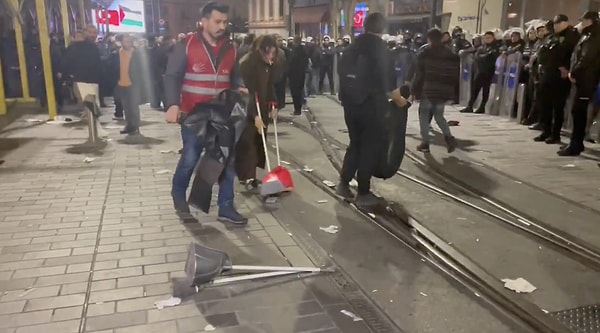 Gençler hareketin akabinde gençler sokakları temizlerken görüntülendi.