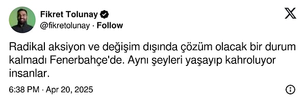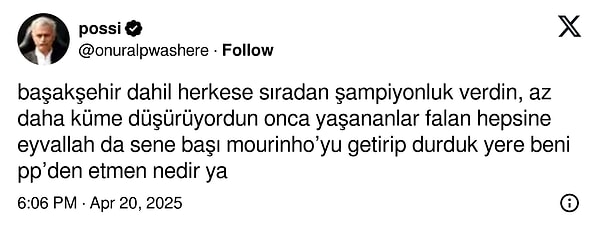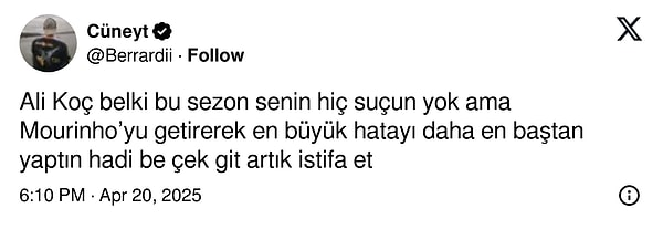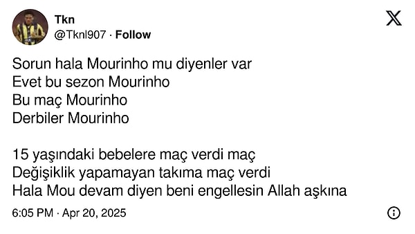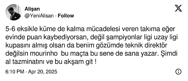 Fenerbahçe meskeninde Kayserispor ile 3-3 berabere kaldı. Maçın akabinde statta isyan vardı. Taraftarlar idaresi istifaya davet ederken toplumsal medyada idare ve Mourinho’ya büyük tenkitler vardı. Toplumsal medyadaki taraftarlar ‘bu dönem da olmadı’ ruh haliyle aklından geçenleri X’te paylaştı.