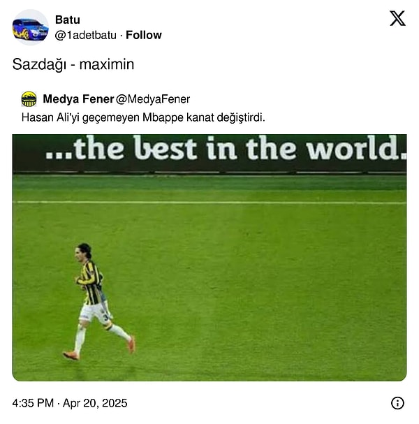 Geride bıraktığımız haftada spor dünyasının gündeminde her vakit olduğu üzere futbol ön plandaydı. Avrupa kupalarında çeyrek final etabı sona erdi. Real Madrid ve Münih Şampiyonlar Ligi’nde yarı finale kalamadı. Arsenal, Inter, Barca ve PSG ismini bir üst tipe yazdırdı. Arsenal’in hem konutunda hem de deplasmanda aldığı galibiyet çok konuşuldu. Fenerbahçe, ligde şampiyonluk yolunda büyük yara aldı. Bakalım kimler Twitter’daki paylaşımlarıyla yaşananlara renk katmış?