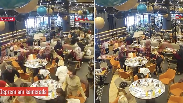İstanbul’da arka arda zelzeleler meydana geldi. Birinci olarak 3.9 daha sonra 6.2 büyüklüğündeki iki deprem çevre vilayetlerden de hissedildi. Artçı sarsıntılar devam ettiği anlarda Ümraniye’deki bir kafeden gelen imajlar paylaşıldı. İçerdeki vatandaşların dehşet dolu anları kameralara yansıdı.