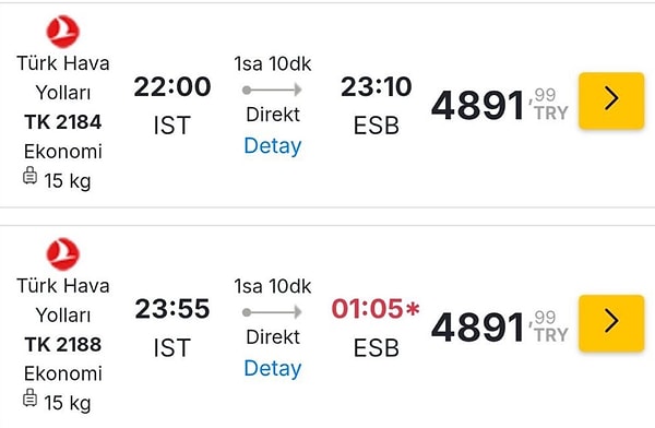 İstanbul-Ankara ortası 4 bin 900 lira oldu.