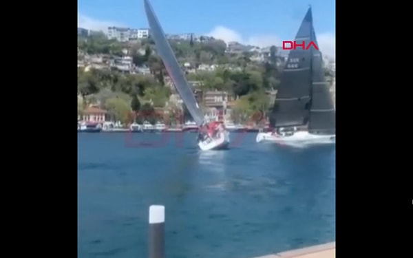 İstabul Boğazı’nda bir yelkenlinin istikameti değişti. Devrilme tehlikesi yaşayan yelkenlinin o anlar bir vatandaşın kamerasına yansıdı.