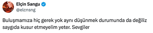 Bu tenkitler karşısında Elçin Sangu, “Bu kadar katı ve dogmatik olmamak lazım diye düşünüyorum.” diyerek cevap verdi.