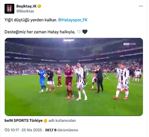 Beşiktaş, resmi hesaptan da Hatayspor ve Hatay’a dayanak iletisi paylaştı.