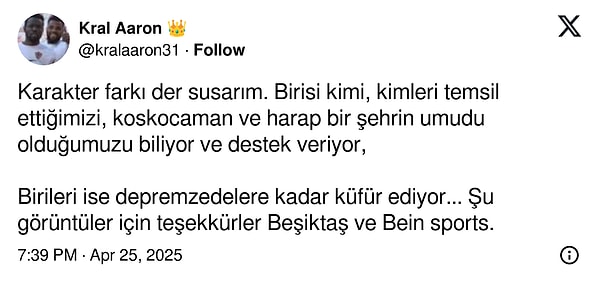 Beşiktaş , toplumsal medyada yaptığı paylaşımda ‘Yiğit düştüğü yerden kalkar.