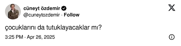 Özdemir, Ongun’un eşinin gözaltına alınmasına reaksiyon göstererek ‘Çocuklarını da tutuklayacaklar mı?’ dedi.