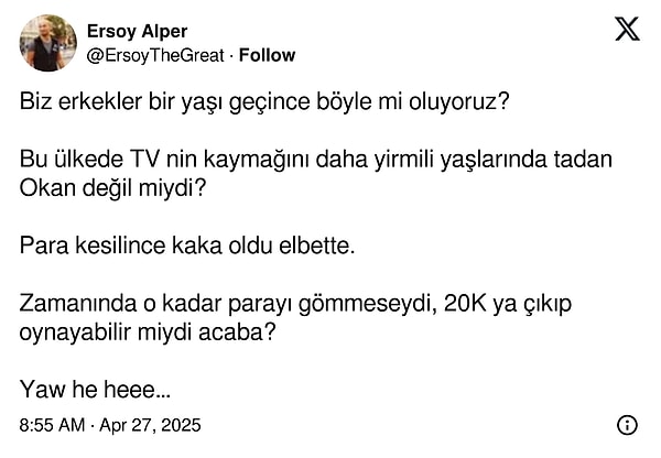 Yıllar boyunca sunduğu gösteri programlarıyla, birbirinden ünlü konukları ağırlarken yaptığı dobra açıklamalarıyla meşhur Okan Bayülgen, bilhassa bir devir televizyonun mihenk taşlarından biriydi biliyorsunuz.