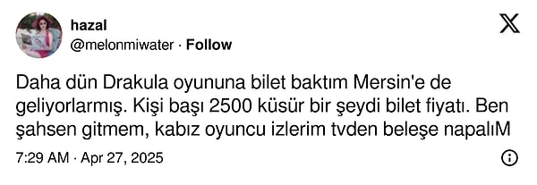 ‘Yahu şekerim ben oyuna başına 20 bin lira alıyorum, arkadaş 2 milyon alıyor. Bak tiyatro oyuncusuyla bunların, dizi oyuncusu ortasındaki fark şu; yahu ben en ünlü tiyatro oyuncularından biriyim değil mi? Televizyondan getirdiğim bir şöhretim var. Ben oyun başına 20 bin lira alırım, bu 2 milyon alır.