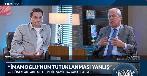 AKP’nin 26. Devir milletvekillerinden Şamil Tayyar, Ekol TV’de Armağan Çağlayan’ın programına konuk oldu. Ekrem İmamoğlu’nun tutuklanma süreci hakkında açıklamalarda bulunan Tayyar, “Ekrem İmamoğlu’nun tutuklanması yanlış, tutuklanmadan da bu süreç devam ettirilebilirdi” dedi.