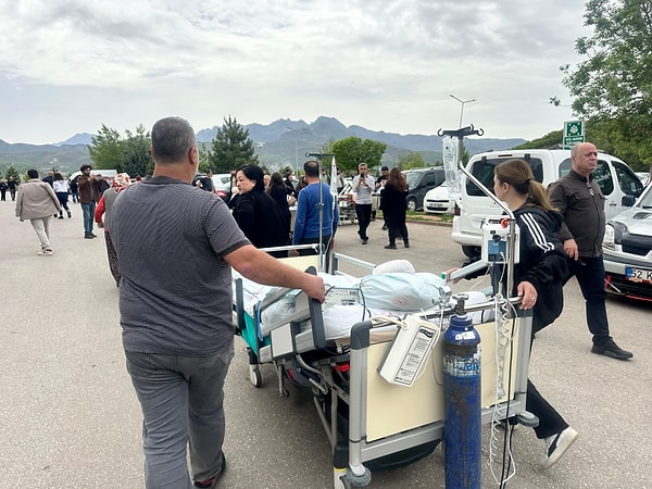 Hastanede tedavi gören yaklaşık 40 hasta ise sedyelerle ve yataklarla hastanenin açık otopark alanına tahliye edildi.