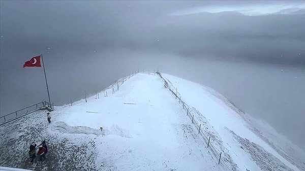 Culfa, teleferikle doruğa çıkan ziyaretçilerin kar sürpriziyle karşılaştığını ve görünümün keyfini çıkardıklarını belirtti.