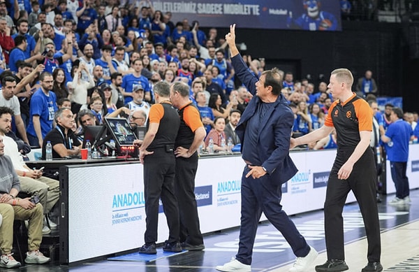 Karşılaşmanın son 16 saniyesine girilirken Anadolu Efes’in teknik faul kazanmasının akabinde Ergin Ataman, grubuna reaksiyon gösterdi. Hakemler bu konumu incelerken Anadolu Efes taraftarı eski çalıştırıcıları Ergin Ataman ile ilgili flaş tezahüratta bulundu. “Ergin Ataman mola alsana” tezahüratıyla yankılanan tribünlere Ataman, reaksiyon gösterdi. Anadolu Efes’e iki defa EuroLeague zaferi yaşattığını hatırlatan Ataman, tribünlere “iki” işareti yaptı. Yaşanan tansiyonun akabinde Ataman, sahayı terk ederek soyunma odasına gitti.