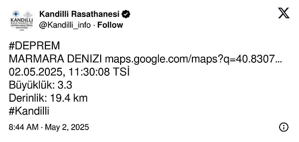 İstanbul’da geçtiğimiz hafta meydana gelen zelzele sonrasında artçı sarsıntılar aralıksız olarak devam ediyor. Bugün de saat 11:30’da merkezüssü Marmara Denizi olan bir artçı sarsıntı meydana geldi.