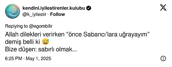 5. İstek Sabancı’nın “Dilekler Tutuldu” Paylaşımı X Kullanıcılarına “Allah’tan Daha Ne İstiyorsunuz?” Dedirtti!