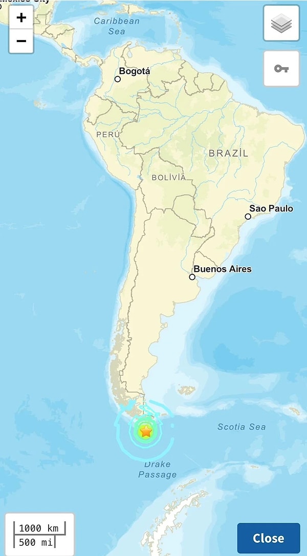 Sosyal medya hesabından paylaşım yapan AFAD, ‘Güney Amerika açıklarında Drake Boğazı’nda milletlerarası ajanslardan alınan birinci bilgilere nazaran 7.4 büyüklüğünde bir #deprem meydana geldi’ diye yazdı. 7.4 büyüklüğündeki sarsıntının ardından bölgede en büyüğü 6.6 ve 6.4 olmak üzere toplamda 21 artçı deprem kaydedildi.
