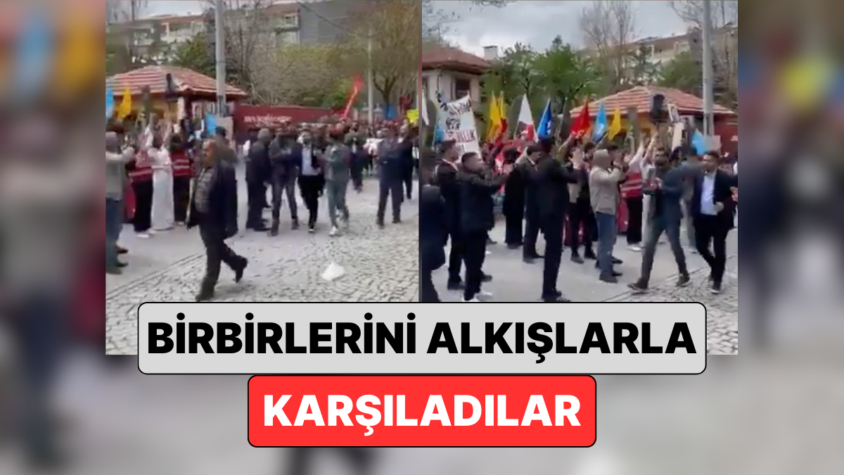 Miting alanına giden CHP Gençlik Kolları ile, Ümit Özdağ için imza toplayan Zafer Partililer karşılaştı. İki küme birbirini alkışlarla selamladı.