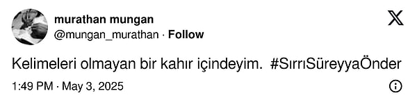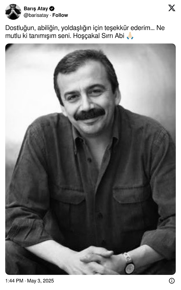Kalp krizi geçirdikten sonra ameliyata alınan ve günlerdir ağır bakımda tedavi gören DEM Parti İstanbul Milletvekili Sırrı Süreyya Başkan, ağır bakımdaki 18. gününde hayatını kaybetti. Sırrı Süreyya Öncü’nün vefatının akabinde ünlü isimlerden taziye paylaşımları geldi.