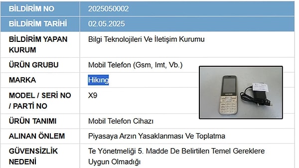Bakanlık tarafından paylaşılan listede Dıjıtsu, Reeder, Hikıng marka cep telefonlarının kimi modellerinin yasaklandığı açıklandı.