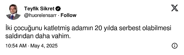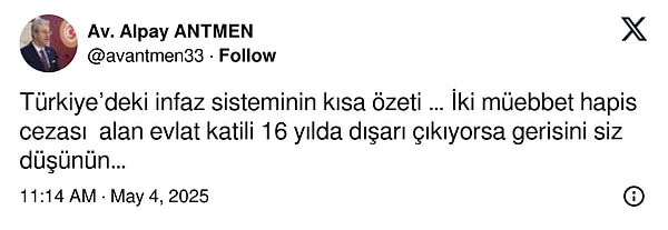 Müebbet Mahpus Cezası alan saldırgan, 2020 yılında ise kaideli tahliye ile serbest bırakılmıştı.