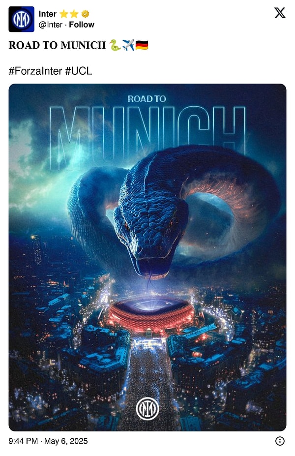 Barcelona’yı toplamda 7-6’lık skorla mağlup ederek Şampiyonlar Ligi’nde ismini finale yazdırma başarısı gösteren Inter’in toplumsal medyada paylaştığı ‘Münih’e giden yol’ temalı galibiyet gönderisi futbolseverlerde büyük ilgi uyandırdı. Taraftarlar, Inter’in dizaynını kendi kadroları için uyguladı. Ortaya çok farklı görseller çıkarken Türkiye’deki kulüplerin bu hususun üstününe fazla düşmemesi tenkitlere neden oldu.