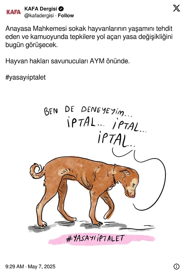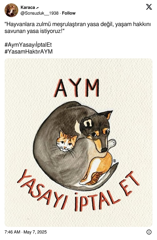 Tepki çeken hayvan hakları yasasının iptali için toplumsal medyada da kampanya başlatıldı. 👇