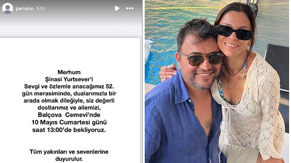 “Merhum Şinasi Yurtsever’i sevgi ve hasretle anacağımız 52. gün merasiminde, dualarımızla bir ortada olmak dileğiyle, siz pahalı dostlarımızı ve ailemizi Balçova Cemevi’nde 10 Mayıs Cumartesi günü saat 13.00’te bekliyoruz. Tüm yakınları ve sevenlerine duyurulur.”