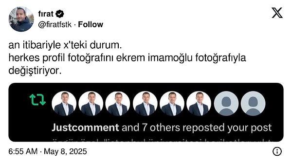 5. X Kullanıcıları Ekrem İmamoğlu’na Dayanak Emeliyle Profil Fotoğraflarını Değiştirmeye Başladı