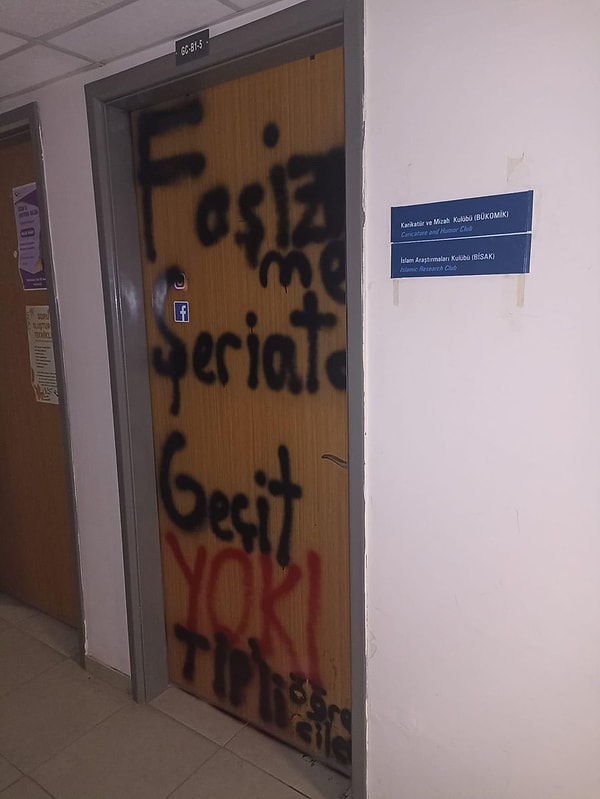 Türkiye Emekçi Partili (TİP) öğrenciler, ilahiyatçı Nurettin Yıldız’ı aktifliğine davet eden Boğaziçi Üniversitesi İslam Araştırmaları Kulübü’nün (BİSAK) kapısına “Faşizme, şeriata geçit yok” diye yazmıştı.