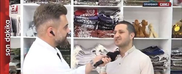 PKK’nın fesih ve silah bırakma kararı sonrası A Haber, rotasını Diyarbakır’a çevirdi. Karar sonrası birinci sokak röportajı geldi. Hac ve umre materyalleri satan bir esnaf, ”’Türkler ve Kürtler kardeşiz’ demekle kardeşlik sağlanmıyor. PKK sebep değil sonuçtur. Hakka hukuka dayalı bir barış istiyoruz’ dedi. İstediği karşılığı alamayan muhabir, canlı yayında şoka uğradı.