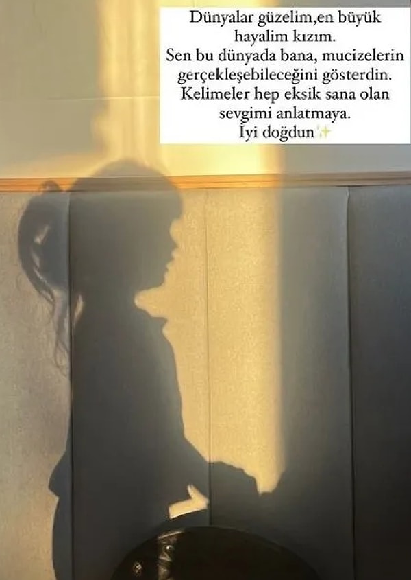 Son olarak yaptığı paylaşıma ‘Dünyalar güzelim, en büyük hayalim kızım. Sen bu dünyada bana, mucizelerin gerçekleşebileceğini gösterdin. Sözler daima eksik sana olan sevgimi anlatmaya. Yeterli ki doğdun.’ notunu düşen Bergüzar Korel’in 3 yaşına basan kızı Leyla’nın gölgesini görebilmiştik.